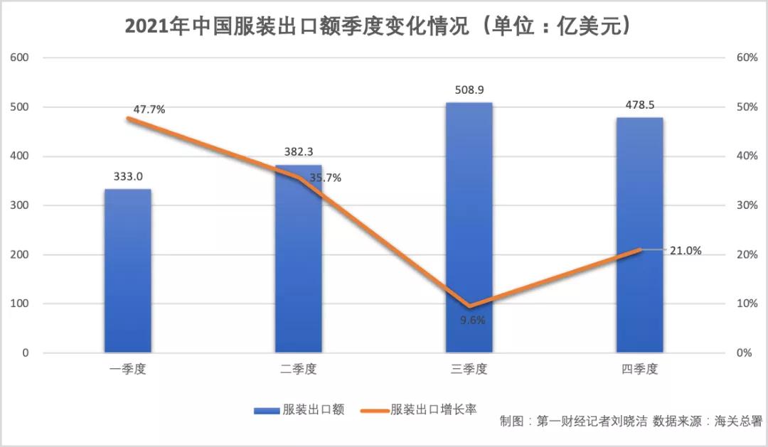 在外需恢复和疫情导致的订单回流等利好因素下,时隔五年,中国服装出口再次站上1700亿美元的关口。